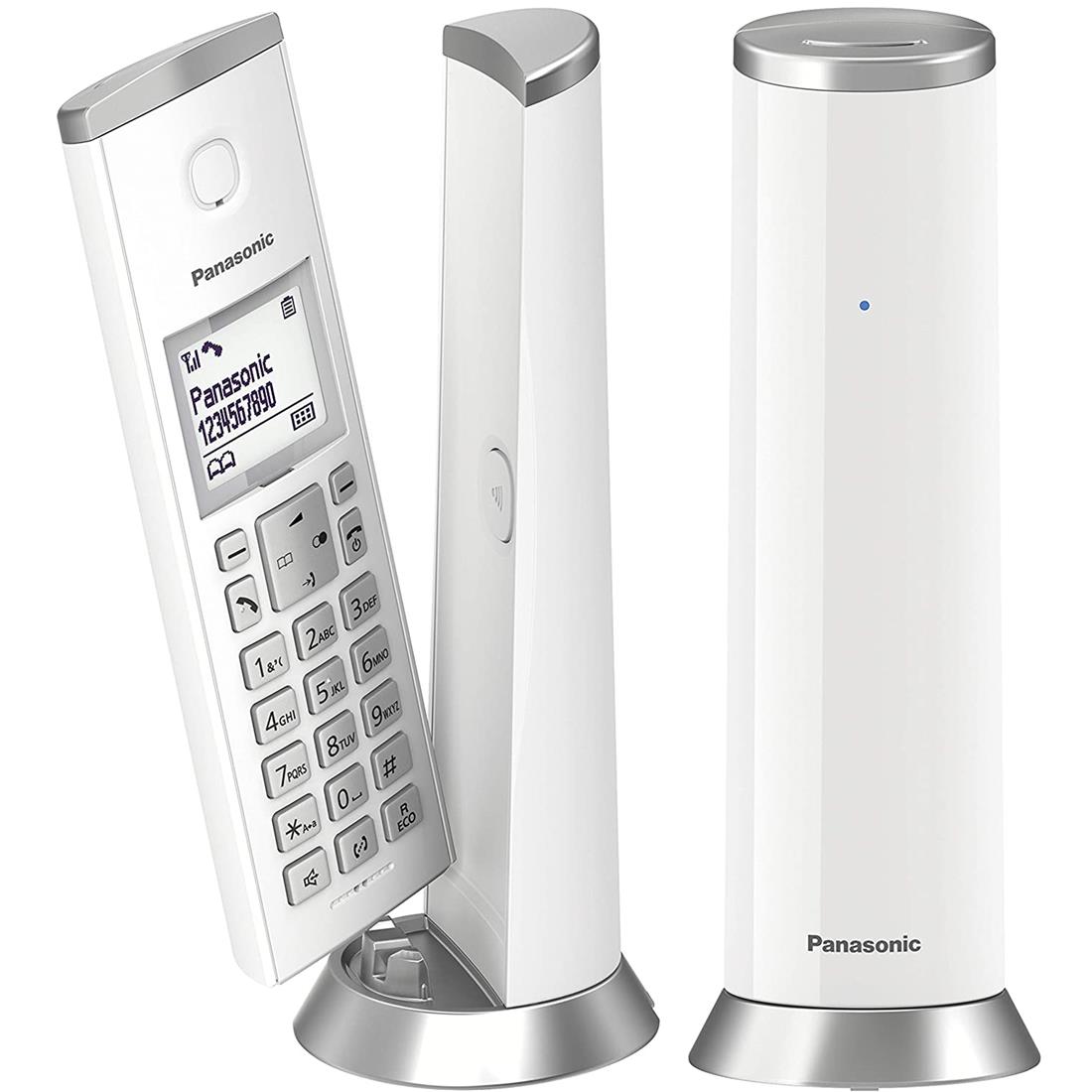- El Panasonic KX-TGK212S es un teléfono de diseño único y sencillo que se adapta de forma natural al estilo de tu salón. Su formato vertical y su tamaño discreto hacen que se integre perfectamente en la decoración de tu hogar. Además, su sofisticado acabado en plata evoca el lujo y la elegancia.
