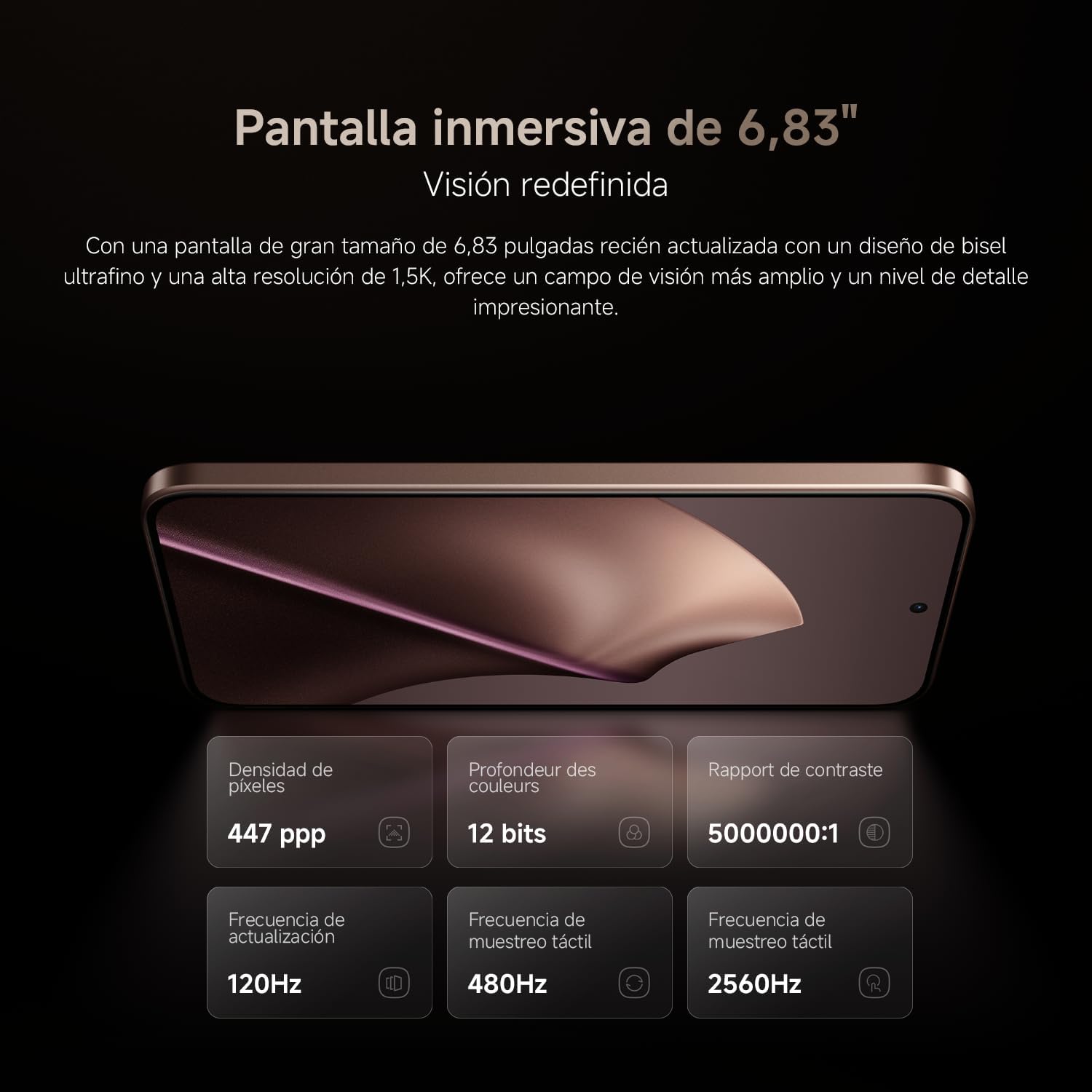 - Pantalla AMOLED 1,5K de 6,83″: 120 Hz, 3200 nits, HDR10+, Dolby Vision