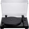 - Incluye un cable estéreo RCA dual (macho) a RCA dual (macho), un adaptador de 45 rpm, una alfombrilla de goma y una cubierta antipolvo con bisagra extraíble.